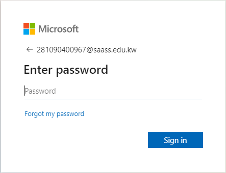 2- لتسجيل الدخول قم بكتابة رقمك المدني متبوعا @saass.edu.kw